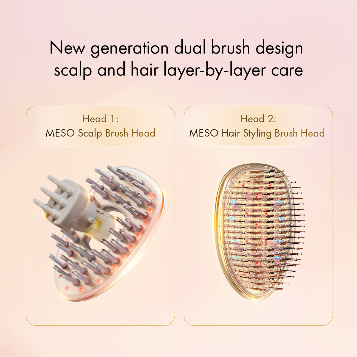 Revitalize scalp with the Mesotherapy Scalp Brush – 44 soft silicone bristles, EMS microcurrent, LED red light, and mesoporation technology for deep scalp nourishment and follicle activation.