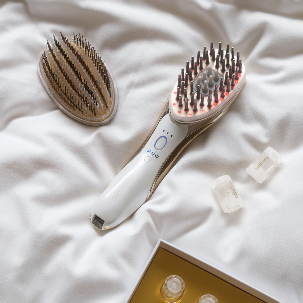 Red light energises the follicles, while blue light calms irritation and soothes sensitive scalps—ideal for daily care.