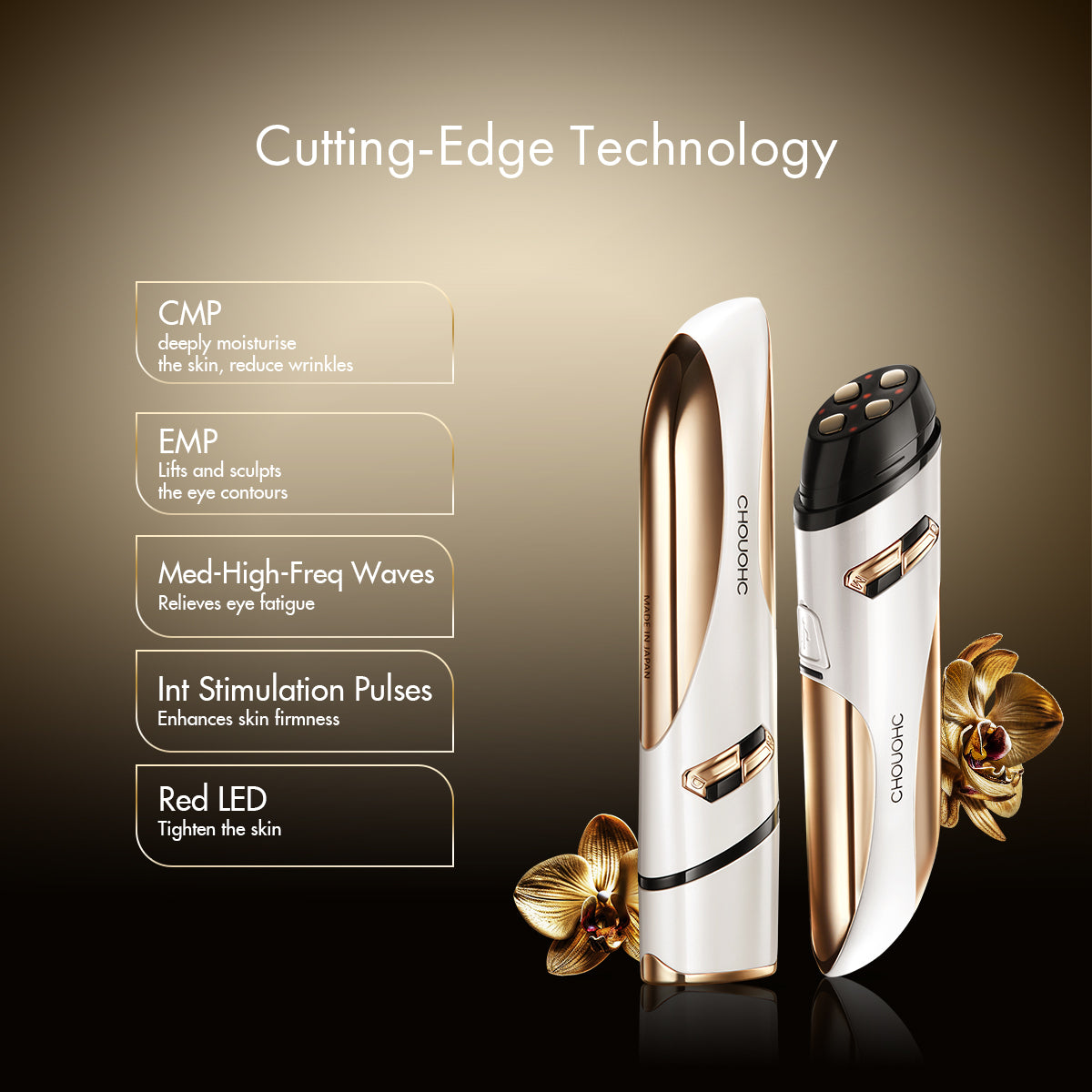 Combines pulse, EMS, and mid-high frequency waves to deeply penetrate skin, moisturizing the delicate under-eye area.